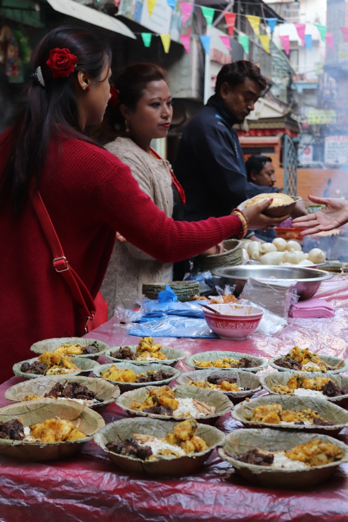 PIATTI LOCALI – Bere acqua sempre e solo da bottiglie chiuse, mai dal rubinetto. Alcuni ristoranti servono acqua bollita. Il piatto che contraddistingue la cucina nepalese è indubbiamente il Dal Bhat: riso, verdure e patate, una zuppa di lenticchie e, talvolta, accompagnato da carne di pollo, speziata al curry. Molte famiglie nepalesi possono mangiare Dal Bath a pranzo e cena, tutti i giorni, con rare eccezioni. Nei ristoranti, se si ordina Dal Bath si può avere il refill finché non si è sazi. I Momo sono ravioli ripieni di carne o verdura cotti al vapore, simili ai tradizionali ravioli cinesi. I Naan sono delle semplici schiacciatine, dolci oppure salate, preparate con farina e uova. Il Lassi è un frullato di yogurt e frutta di stagione.
