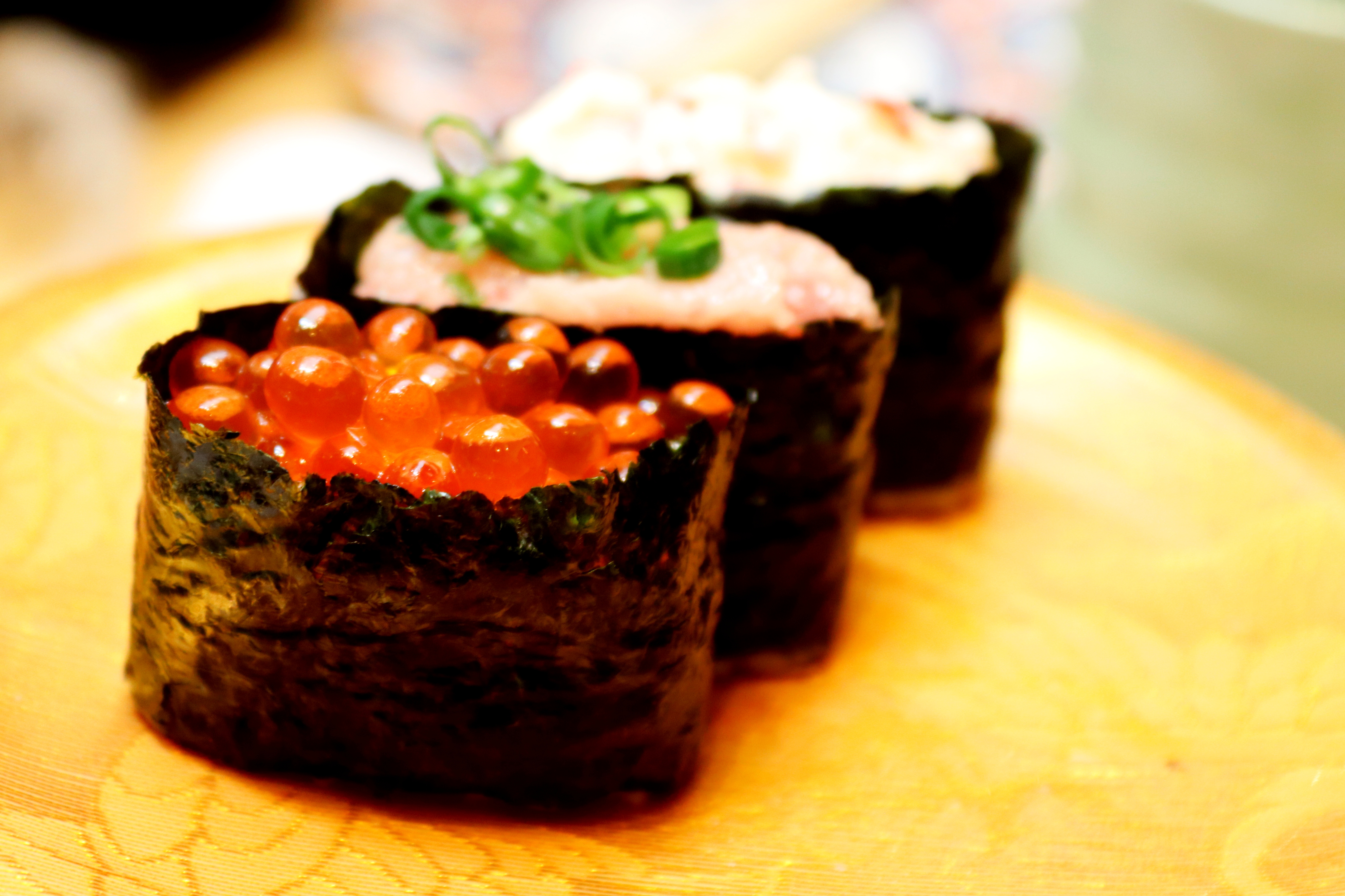 DA ASSAGGIARE – Il cibo in Giappone è una deliziosa esperienza del palato ed allo stesso tempo anche una caratteristica distintiva del paese. La tradizione culinaria nipponica, ormai diffusa in tutto il mondo, elogia senza dubbio il sushi, con cui si intendono tutti i piatti a base di pesce crudo e riso. Tra questi i maki (arrotolati nell’alga nera, detta nori), i nigiri (pesce adagiato su polpettine di riso dalla forma leggermente allungata), la tempura (gambero fritto). Il sashimi invece è pesce crudo senza il riso. Il tutto può essere accompagnato dalla piccante salsa verde wasabi, o dalla più dolce salsa di soia. Sono numerosissimi i ristoranti al nastro da cui pescare i piattini colorati con adagiati assaggi di sushi e sashimi a proprio piacimento, ammirando l’arte dello chef che davanti agli ospiti seduti tutt’intorno lavora ininterrottamente alla preparazione delle pietanze.