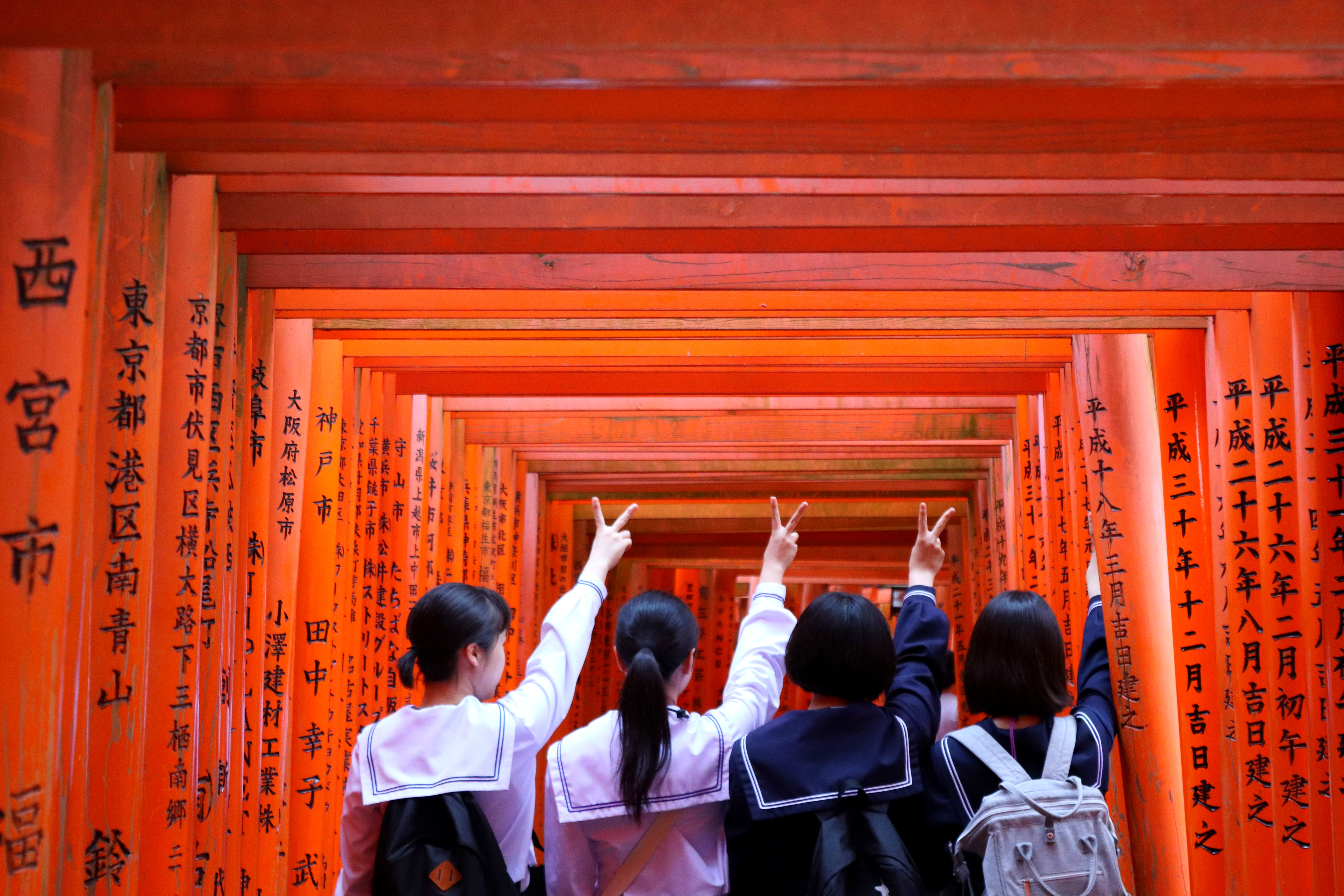 Kyoto – Città ricca di storia e tradizioni, da scoprire magari durante uno spettacolo a teatro nel Gion Corner, nei movimenti lenti di una maiko (apprendista geisha) danzante, o nella drammaticità di una scena di marionette bunraku. Nel quartiere le lanterne rosse indicheranno i ristoranti aperti in cui fermarsi ad assaggiare una cena tipica, serviti da cameriere in kimono. Il Santuario Fushimi Inari Taisha è uno spettacolare susseguirsi di torii (così vengono denominate le porte di accesso ad un’area sacra), in legno dal color arancio fiammante a snodarsi in fila in un percorso di circa due ore nell’area del santuario. Il Nishiki è il mercato dello shopping e degli ottopodi. Il castello Nijō può essere visitato per ammirare le spaziose stanze affrescate. Impressiona quella delle tigri, iconografia importata dalla Cina, per intimidire gli ospiti in attesa di incontrare l’imperatore. Il Kinkaku-ji si riflette sulle acque del laghetto circostante, attorniato da un giardino tranquillo, brillando dello splendore che caratterizza questo tempio dorato. Arashiyama offre percorsi ombreggiati nella foresta di bambù, lontano dal centro, tra paesaggi sinuosi disegnati dalle colline che si affacciano sul lago, e una “foresta dei kimoni” ad esporre sete pregiate contenute in colonne di vetro.