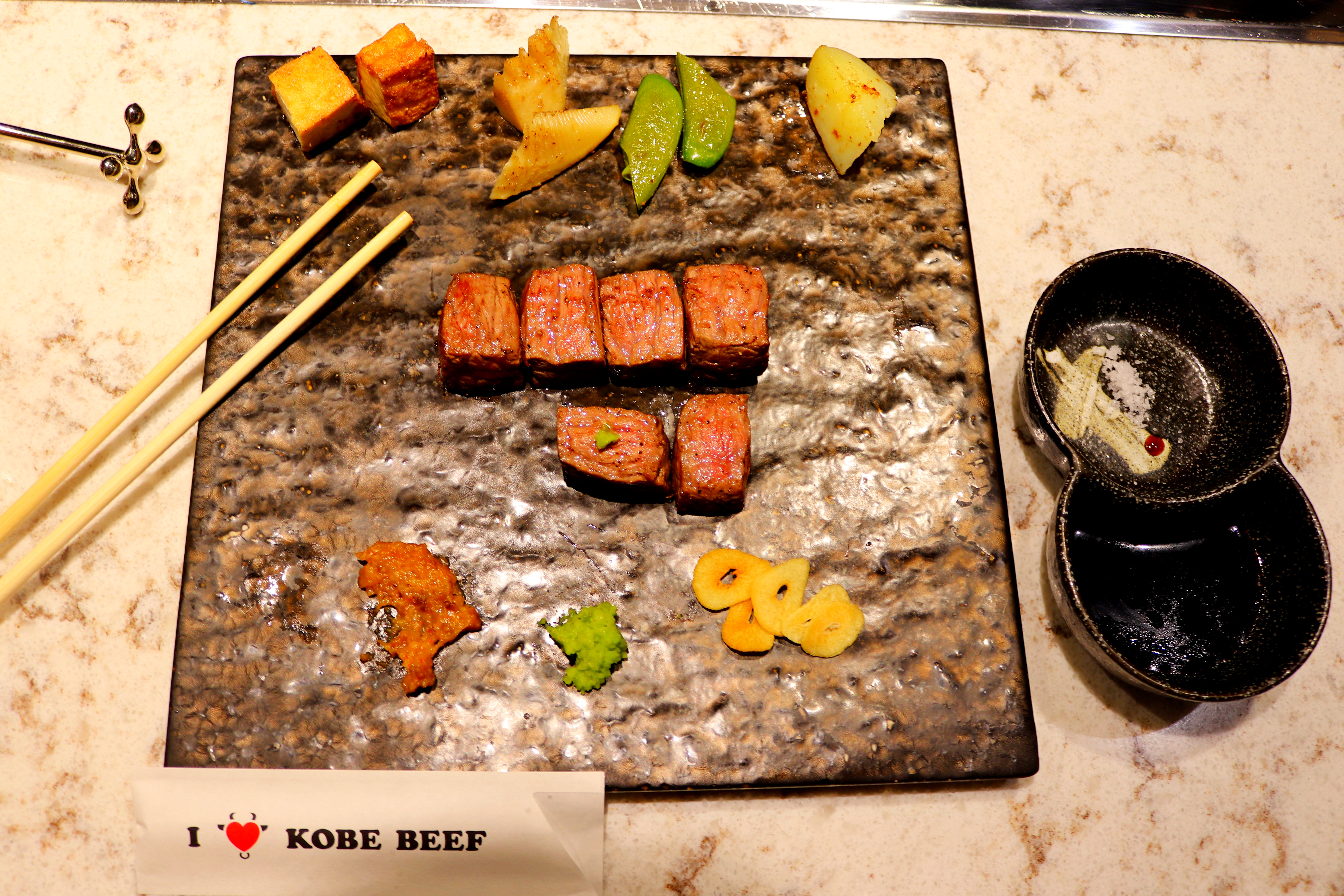 Per chi non lo sapesse, e sorpresa degli scettici, anche i piatti a base di carne (dei manzi giapponesi Wagyū) sono vere e proprie prelibatezze. Tra queste spicca la carne di Kobe, squisita bistecca di manzo tagliata senza osso, generalmente cotta alla piastra e servita in cubetti. Sono altrettanto tipiche le varie modalità di cottura della carne. La cucina Shabu Shabu prevede carne servita cruda, tagliata a fette fini dagli chef, da bollire in una pentola posizionata al centro della tavola direttamente dagli ospiti. Mentre nella cucina Yakiniku la cottura della carne avviene sulla griglia, sempre da parte degli ospiti.