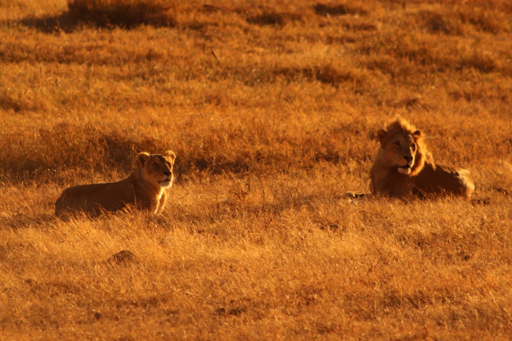 Una pianura sconfinata di erba dorata dominata dai felini. Lo spettacolo più mozzafiato, e neanche troppo raro, è trovarsi vicino ai ghepardi che riposano, ai leoni che si svegliano e ci mostrano le zanne in uno sbadiglio, a un cucciolo di leopardo su di una roccia, a bordo di una jeep col tettuccio apribile, magari a caccia di un primo piano.
