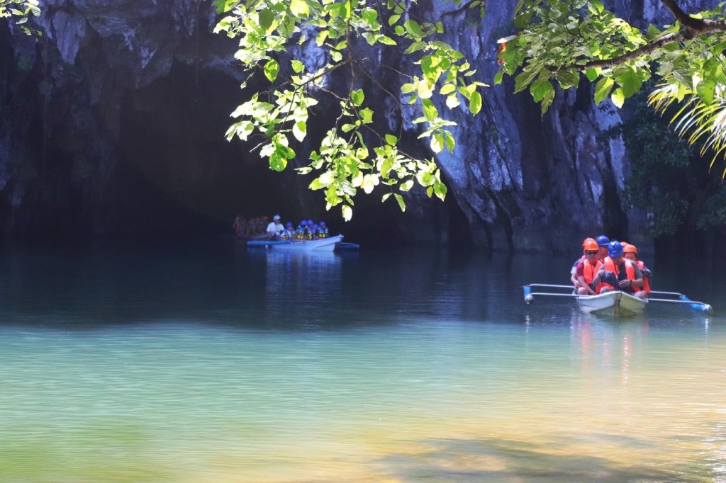 Barche di turisti all’uscita del fiume sotterraneo