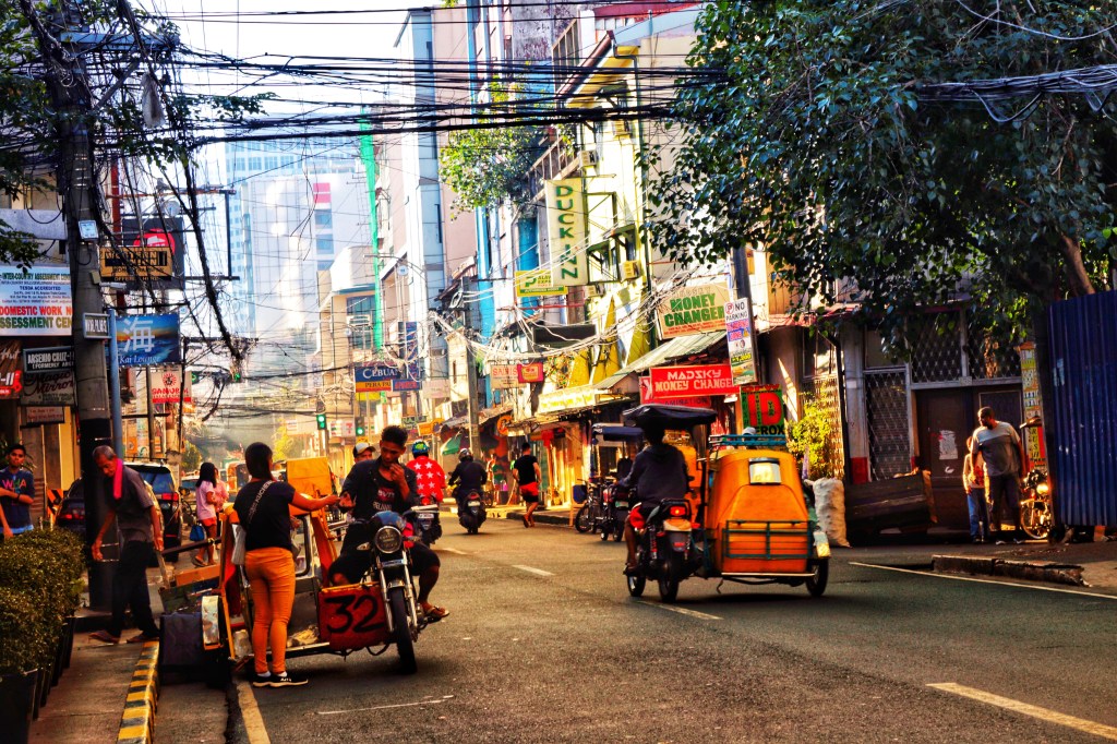 I motorini con sidecar e i cavi dell’elettricità a Manila