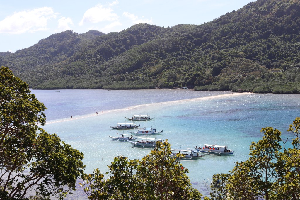 LE TARTARUGHE DI PORT BARTON. Più a Sud dell’isola di Palawan, Port Barton è una località turistica meno gettonata, e proprio per questo ancora più preziosa, finché preserverà questo essere indigena e poco esplorata, caratteristiche che a mio parere l’hanno resa speciale, per le sue meraviglie, la sua natura pura e inconscia dei turisti che qui non sono ancora arrivati in gran numero. La sera di Capodanno si festeggia con fuochi d’artificio sulla spiaggia. Dalla mattina seguente il nuovo anno inizia con altri tre giorni di escursioni in barca. Il solito catamarano, ovvero una barchetta di legno dalla forma allungata e dalle estremità appuntite, resa stabile dai lunghi tronchi bambù ai lati, con il solito motore rumoroso, ma in mezzo ad un mare diverso da quello che abbiamo visto nei giorni precedenti. Gli stessi colori turchese e sfumature ancora più frequenti di acqua chiarissima e acqua profonda quando finisce la barriera corallina o quando emerge una lingua di sabbia. Mancano gli isolotti che fuoriescono dall’acqua e che avevano contraddistinto il paesaggio marino di El Nido. Si vedono finalmente le tartarughe nuotare lentamente sotto di noi. Sembrano volare sott’acqua con le pinne anteriori, emergono dall’acqua e si reimmergono. In una lingua di sabbia emergono stelle marine giganti. Si vedono altri pesci pagliaccio tra le Anemoni. Altri coralli. Altre spiagge tropicali incorniciate dal verde delle palme. Altre emozioni nel vedere l’ancora lanciata dal nostro equipaggio e il nostro scendere nell’acqua che ci arriva fino al busto per poi nuotare verso la riva. Perciò indispensabili le sacche stagne in cui abbiamo protetto le nostre macchine fotografiche per tutta la vacanza. Così come necessaria una action cam subacquea, per portare a casa qualche ricordo di momenti subacquei. Immagini dai colori tenui di questo luogo vuoto senza folle e con pochi turisti, ricco di natura e bellezze incontaminate.