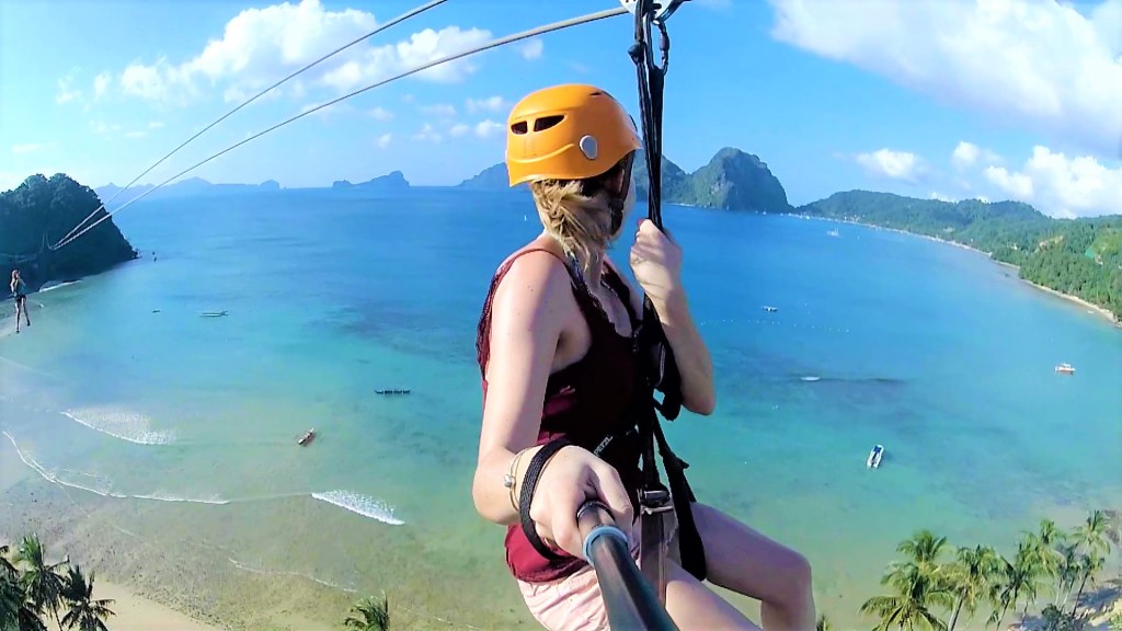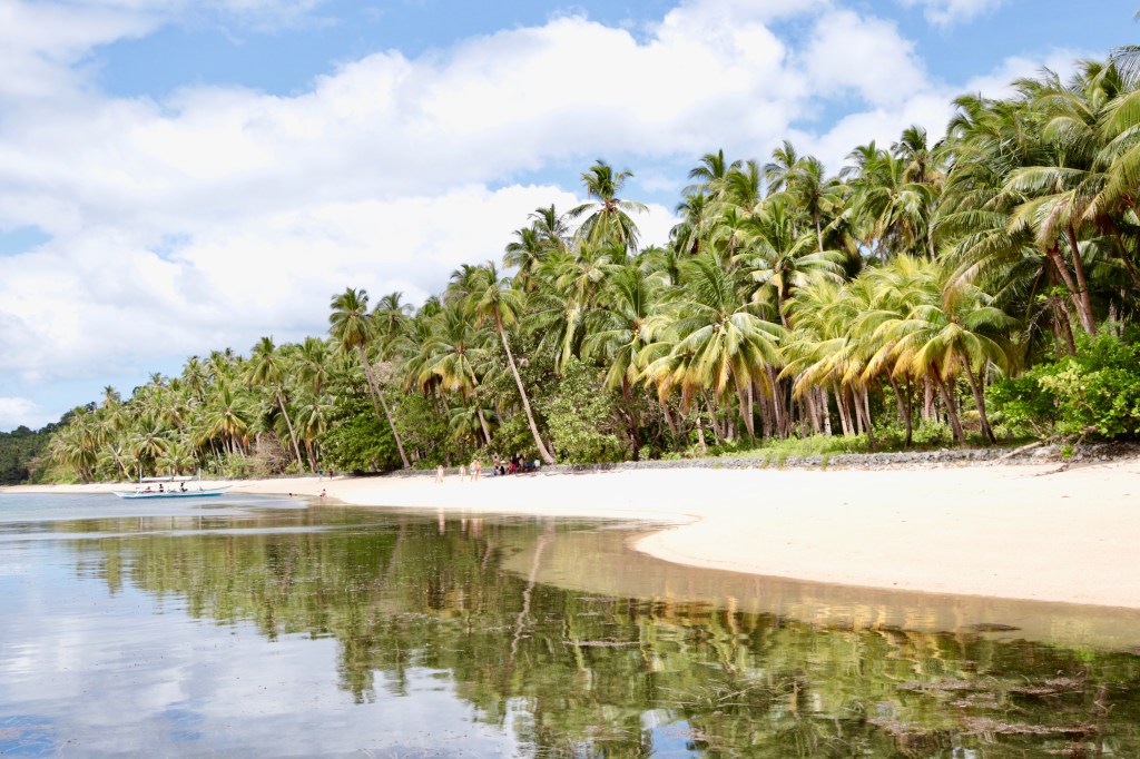 MARE E ISOLOTTI A EL NIDO. Nel pomeriggio ci attende un nuovo viaggio in van, a cui ci abituiamo presto in questa vacanza. El Nido è una delle località più turistiche delle Filippine. Dopo la chiusura della leggendaria spiaggia Boracay, si riversano qui a El Nido la maggior parte dei visitatori. Molti hotel sono in costruzione e la via principale è affollata di negozi e ristoranti sulla spiaggia. Tante coppiette e tanti gruppi in viaggio. Il giorno seguente è il primo giorno di bel tempo per chi, meno fortunato di noi ha subito le brutte giornate e la pioggia della coda del tifone dovendo rinunciare all’uscita in barca. Quindi tutte le barche, che saranno soltanto un centinaio nella località più turistica dell’arcipelago, sono prese e dobbiamo cambiare il nostro programma anticipando il giorno di spiaggia. Trascorriamo la giornata alla spiaggia di Las Cabanas. La spiaggia dalla sabbia bianca e finissima, le palme, la zip line per vedere il panorama dall’alto, i promontori verdi che emergono dall’acqua turchese e uno dei tramonti più belli dell’isola. Dal giorno seguente sono 3 giorni di uscite in barca e una meraviglia dietro l’altra. Si vede che ancora il turismo non è in voga dai nomi che hanno i tour, semplicemente identificabili con delle lettere dell’alfabeto: è possibile scegliere Tour A, B, C, D, composti da varie tappe da raggiungere in barca e pranzo a base di pesce fresco e frutta in una caletta. Le gite in barca sono un’alternarsi continuo di calette nascoste e spiagge da sogno con sabbia fine e palme, oppure da raggiungere a nuoto facendo attenzione a non sbucciarci le gambe e le braccia con scogli e coralli, momenti di snorkeling, incantevoli paesaggi di mare a bordo del catamarano di legno da cui ammirare isolette e rocce sbucare dall’acqua, quadretti tinti dal verde della folta vegetazione e dalle tonalità di azzurro del mare col celeste del cielo. Lo spettacolo è anche sott’acqua: anemoni e pesci tra i coralli della barriera.