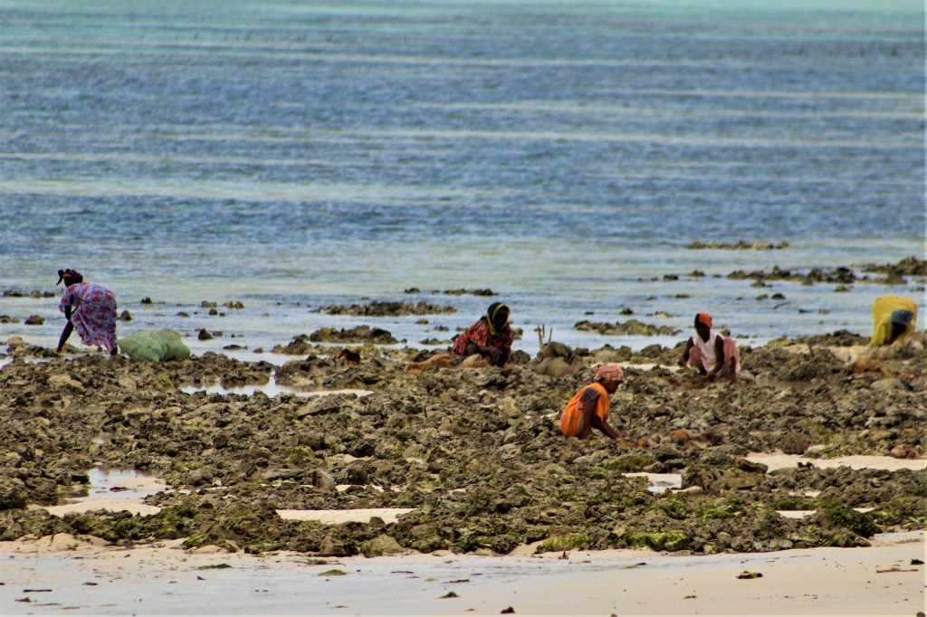 L’hotel sulla spiaggia di Makunduchi scelto in Booking.com è una struttura nuova, inaugurata pochi mesi fa, moderna e tra le poche nel Sud dell’isola. La nostra camera è di rara bellezza con un letto a baldacchino e un’ampia terrazza vista piscina e poi mare, all’altezza delle palme. Ma il vero spettacolo riempie i nostri occhi la mattina seguente, quando vediamo i colori accesi e il panorama in tutto il suo splendore. Ricordo la felicità di affacciarmi alla finestra, per scendere di corsa le scale e bagnare i piedi nell’acqua, e lo stupore quando dopo colazione la marea rivela coralli, ricci e alghe, colorando il mare di macchie variopinte. Qui le donne raccolgono le alghe ed è tipico vederle intente al lavoro con enormi ceste caricate in equilibrio sulla testa. Gli uomini invece vanno a pesca di polpi.