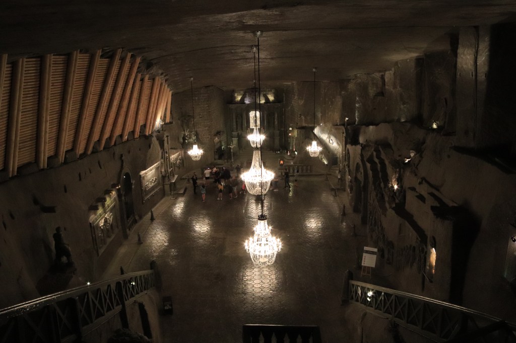 Con un Uber arriviamo a Wieliczka, nell’area metropolitana, appena fuori da Cracovia, per visitare le miniere di sale. Si tratta di una vera e propria città sotterranea che un tempo rese ricca la Polonia, oggi una delle attrazioni principali nei dintorni di Cracovia. Wiliczka fu attiva dal XIII secolo al 1996, nella lista dei patrimoni dell’umanità UNESCO, è una delle più antiche miniere di sale al mondo. Si scende ad una profondità di 327 metri e si visitano in un tour guidato i cunicoli, i laghi e le grotte scavate per un’estensione di 287 km! Ovviamente impossibile percorrerli tutti in alcune ore. Alcuni sono chiusi quando sottoposti ad attività di controllo e restauro per garantire la massima sicurezza. Di certo, il luogo più spettacolare delle miniere è la cappella di sale, conosciuta come la “Cattedrale sotterranea della Polonia”, un’enorme sala a cui si accede da una terrazza panoramica illuminata da giganti lampadari in cristallo e adornata da sculture in rilievo lungo le pareti e figure religiose tutte in sale, tutte scolpite dai minatori. Persino i cristalli dei candelieri sono stati forgiati nel sale. La Polonia va orgogliosa di questo patrimonio storico e culturale, una volta fonte di ricchezza, oggi museo, oltre a sanatorio sotterraneo per curare allergie croniche, asma e malattie respiratorie.