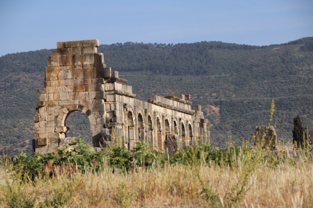 Il sito archeologico di Volubilis è il più importante del Marocco. Lo si visita in una ora o due, con tutta calma per ammirare le colonne e i mosaici. Essendo le giornate di fine maggio molto lunghe (tramonto oltre le ore 20:30), decidiamo di visitare anche Meknes. Bab el-Mansour è il simbolo della città, il portone rinomato per essere il più bello del Marocco, accesso alla medina di questa città imperiale, decisamente la meno turistica delle altre (Marrakesh, Fes, Rabat). Nella piazza avvistiamo i primi addestratori di scimmie, tra il via vai di gente nel souk. Servono ancora alcune ore in van per arrivare a Fes. Ceniamo nella terrazza panoramica del riad, mangiando ancora del tajin, la pietanza di origine berbera proposta in qualsiasi menù e tipica della cucina maghrebina (di Algeria, Marocco e Tunisia). Prende il nome dal caratteristico piatto di terracotta, in cui viene cotto, e servito il cibo. Sollevando il coperchio di forma allungata, per permettere alla condensa di ricadere verso il basso, si rivelano verdure, carne di pollo, manzo o agnello. Tipico anche cuocere il pollo con della frutta secca (prugne, albicocche). Spesso le pietanze vengono insaporite con spezie: coriandolo, cannella, zafferano, curcuma. A fine pasto, o all’inizio in segno di ospitalità, viene servito sempre del tè alla menta in teiere di metallo.