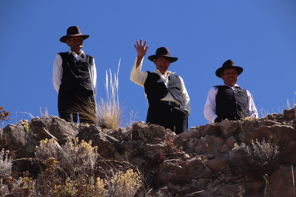 Arriviamo nel primo pomeriggio sull’Isola Amantani, altro popolo tradizionale del Titicaca, dove gli uomini, tutti tuttofare dalle poliedriche capacità e arti, costruttori, pescatori, allevatori e contadini, sin dalla più tenera età, indossano un gilet nero su una camicia bianca e un sombrero marrone (uguale a quello che avevo comprato al mercato di Arequipa pensando che fosse un modello da donna!). Veniamo suddivisi in gruppi, in modo che possano ospitarci delle famiglie. Nella nostra il padre si chiama Dios. La madre ci prepara un buonissimo pranzo a base di zuppa di quinoa e verdure, formaggio di mucca, patate dolci e salate, tè alle foglie di coca a fine pasto. Il figlio di 9 anni è fuori; sta guardando l’allevamento ci dicono. La bambina è affettuosissima, abituata ed entusiasta dei visitatori dalla pelle bianca, dai vestiti diversi, ospiti in un luogo affascinante, unico, forse di una quiete monotona. Facciamo una breve camminata verso il mirador, i due punti più alti dell’isola (denominati dal culto inca, Pachamama e Pachatata) per vedere un tramonto spettacolare, da cui si osserva anche la Bolivia, al di là del lago, e le Ande sullo sfondo. Attorno ad un tempio facciamo ognuno di noi 3 giri, seppelliamo alcune foglie di coca sotto una pietra. Ogni giro ed ogni offerta corrisponde, come da tradizione, ad un desiderio. Così gli Inca chiedevano i doni alla madre terra nelle loro celebrazioni. La cena è con i nostri compagni di viaggio, tutti nella sala maggiore di una delle famiglie e dopo possiamo cimentarci in danze e balli tradizionali vestiti con abiti degli abitanti dell’isola. È notta fonda e la Via Lattea è una striscia orizzontale perfettamente visibile se ci mettiamo a naso all’insù. Sarà freddo, ma non sotto le coperte. Una cultura nuova, il calore degli abitanti delle Amantani, e lo spettacolo della natura non fanno certo soffrire la mancanza delle comodità della nostra, ora lontana, parte di mondo.
