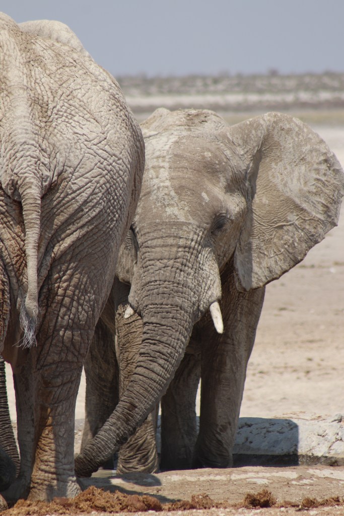 L’Etosha è uno dei migliori luoghi al mondo per i safari, che qui possiamo fare in completa autonomia, seguendo le mappe offline e cartacee, le indicazioni sulla pietra e i nomi delle pozze lungo i percorsi sterrati. Gli animali vanno a bere e la pozza può essere spesso molto affollata, sia di prede, sia di predatori; qui tutti si concedono un momento di tregua dalle leggi della natura. Non mancano le sorprese: un leone dorme sotto un albero nella calura del giorno, alzandosi solo per seguire l’ombra delle fronde. Abbiamo tutto il tempo di pazientare, osservarlo sbadigliare, andare a vedere una pozza poco distante, e tornare, per ritrovarlo nel solito posto, poco più in là. Che sia il re è solo merito delle raffigurazioni nei film Disney. In realtà fa sempre poco o nulla. All’ora del tramonto, alle pozze dei camp Okaukuejo e Halali, è ormai una ricorrenza attendere l’arrivo dei branchi di pachidermi. Prima si intravede una nube di terra in lontananza, poi si sentono alcuni barriti, si vedono più nitide le sagome dei piccoli impacciati tra le zampe delle elefantesse, e si notano le zanne dei grandi maschi. Tutti amano fare il bagno e coprirsi di terra. Non sappiamo andare via. Perché alla pozza arriva sempre qualcosa.